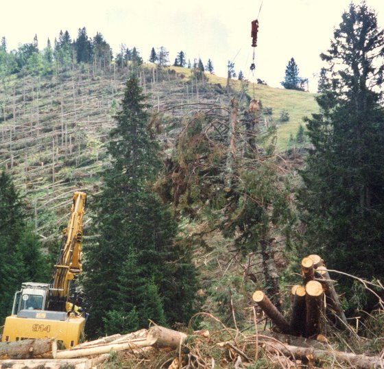 Le câble-grue Wyssen W30 résout vos problèmes de transport en milieu alpin. Il permet de rassembler le bois d’une bande de forêt d’une largeur de 100 mètres et d’une longueur supérieure à 1000 mètres. Il lève des charges lourdes et les transporte en amont ou en aval pour les déposer au bord de la route. Le grand avantage de cette installation est de ne pas encombrer la place de dépôt des bois et ainsi bloquer le passage des machines destinées au tri des bois.